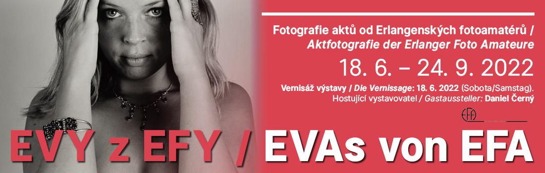 Letos bude spolek v chomutovském muzeu vystavovat již posedmé. Poslední výstava se konala v roce 2019. Výstava aktů nazvaná „Evy z EFY“ byla plánována na jaro 2020, kvůli pandemii však musela být o dva roky odložena. Letos se můžeme těšit na celkem 32 uměleckých fotografií od pěti erlangenských umělců, provedené různými fotografickými technikami. Jako hostující vystavovatel byl na výstavu přizván chomutovský fotograf Daniel Černý, který vystaví 7 svých prací.