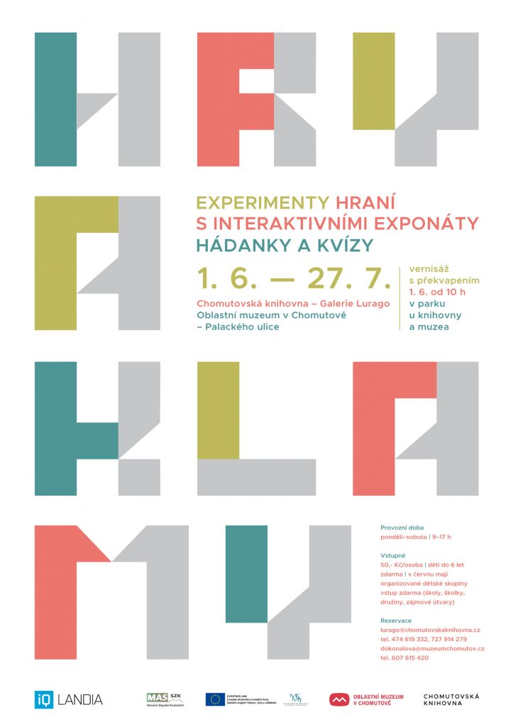 Putovní výstava HRY A KLAMY, zapůjčená ze známé iQLANDIE v Liberci, proběhne od 1. 6. do 27. 7. 2019 ve výstavních sálech hlavní budovy Oblastního muzea v Chomutově (Palackého 86) a galerii Lurago pod Chomutovskou knihovnou (Palackého 4995). Malí i velcí návštěvníci si budou moci vyzkoušet velké množství hlavolamů a fascinujících experimentů. Desítky interaktivních exponátů prověří znalosti každého jednotlivce a zaručeně pobaví celou rodinu. Po celou dobu trvání výstavy budou připraveny soutěže a malá dílna pro zručné experimentátory.