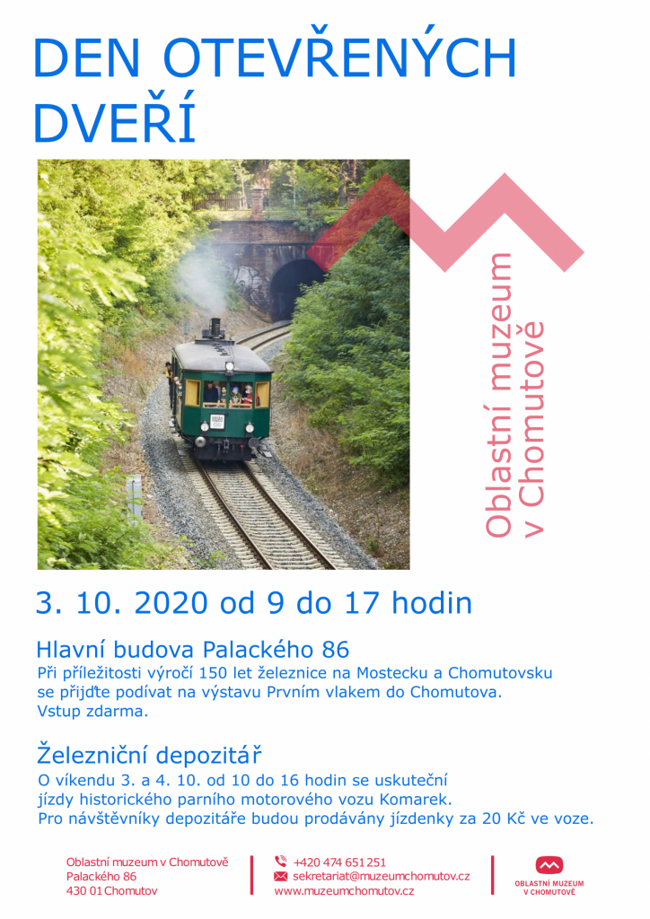 V rámci oslav výročí 150 let železnice bude mezi Mostem a Chomutovem jezdit historický vlak. Zároveň bude mít otevřeno Železniční depozitář Nároního technického muzea, kde Vás svezou parním motorovým vozem zvaným Komarek.