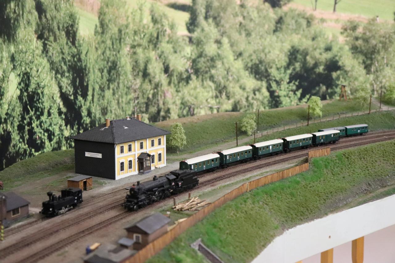 Naše muzeum lokomotivy nevlastní, ale za to máme krásnou výstavu s komentovanou prohlídku a modelem železnice.