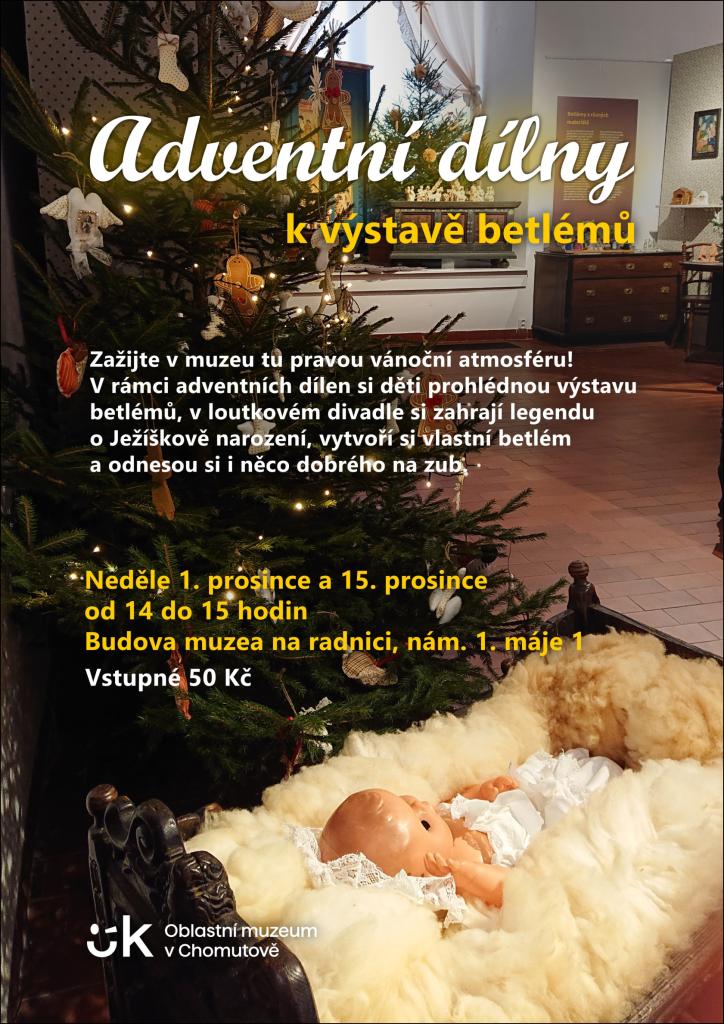 Adventní dílny k výstavě betlémů proběhnou 1. a 5. 12. 2025 od 14 hodin.