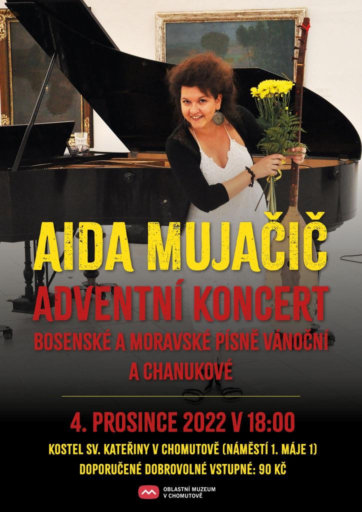 Zveme vás na vánoční koncert zpěvačky a muzikoložky AIDY MUJAČIC z Bosny a Hercegoviny v neděli 4. 12. od 18h v kostele sv. Kateřiny (nám. 1. máje 1). Zazní bosenské a moravské písně vánoční a chanukové. Přijďte se vánočně naladit a zároveň zažít špetku Balkánu! Doporučené dobrovolné vstupné 90,-
