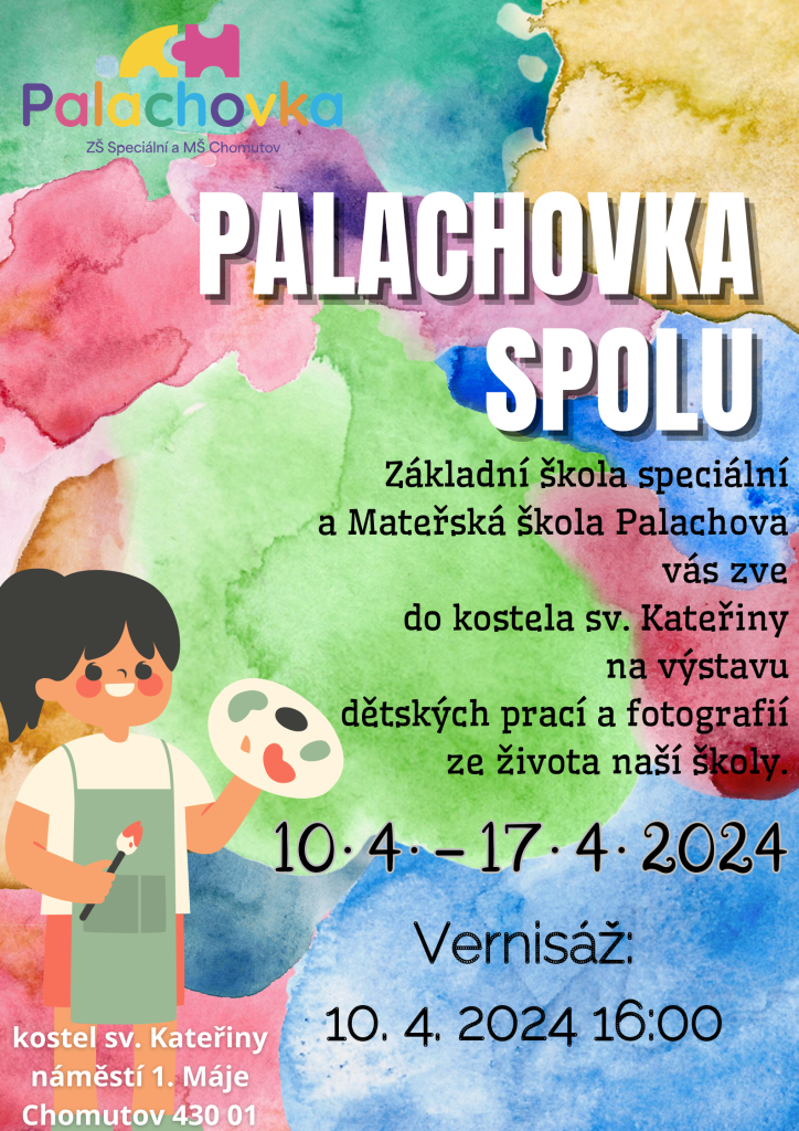 Ve středu 10. 4. od 16:00 hod. proběhne v kostele sv. Kateřiny vernisáž krátkodobé výstavy Palachovka SPOLU. Návštěvníci si zde budou moci prohlédnout dětské práce a fotografie ze života žáků ZŠ speciální a MŠ Palachova.